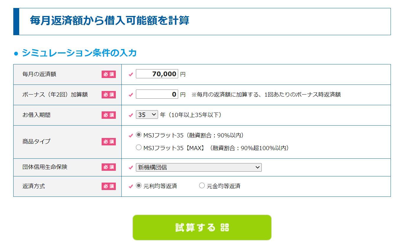 [毎月返済額]から借入可能額をシュミレーションしていきます。